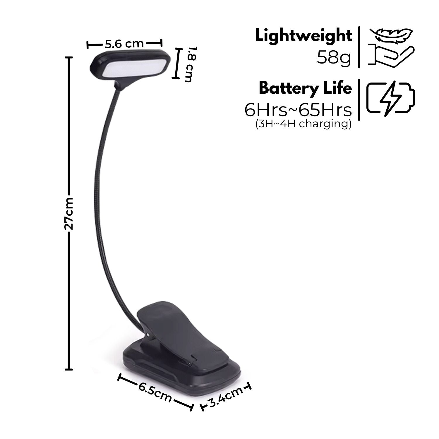 - USB Charging & Battery Level Indicator: Features a built-in 8500mah rechargeable battery and a micro-USB port, it can last up to 65 HOURS reading without charging (at low brightness setting), and it doesn't take a long time to fully charge. The lamp is equipped with an indicator light to show the battery level, allowing you to conveniently check the battery status.